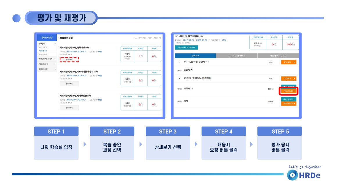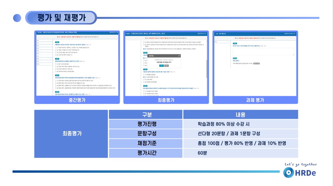 1. 사업주 훈련 : 최종 평가는 훈련 기간 종료일 이후 7일 동안 재응시가 가능합니다.